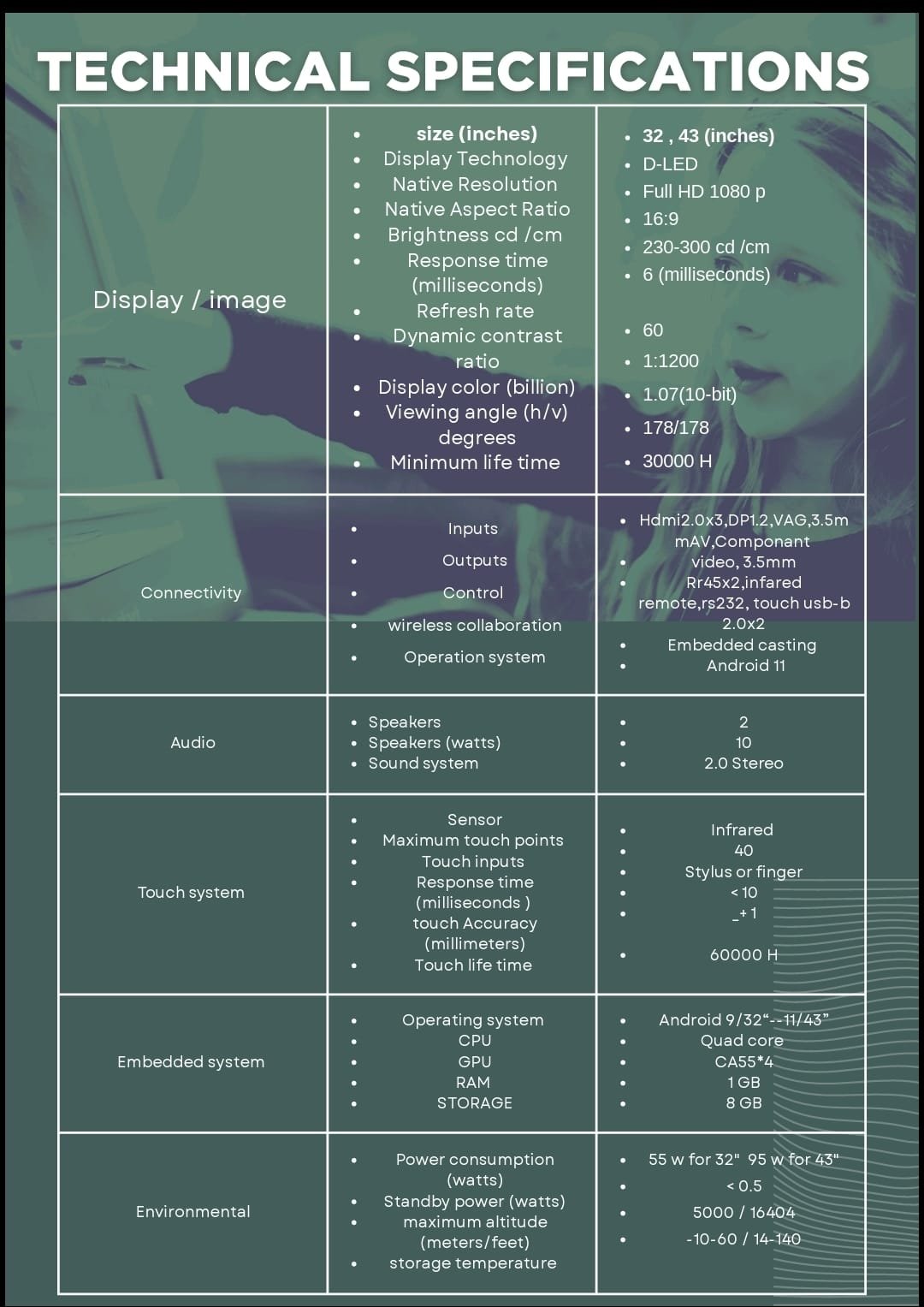 - النوع : الشاشات التي تعمل باللمس| الشاشه التفاعليه| شاشة لمس 43 بوصة