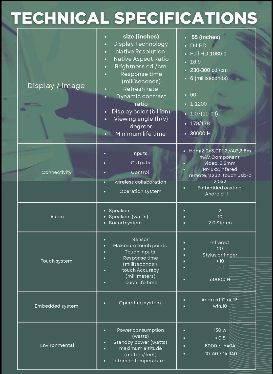 - النوع : الشاشات التي تعمل باللمس| الشاشه التفاعليه| شاشة لمس 55 بوصة